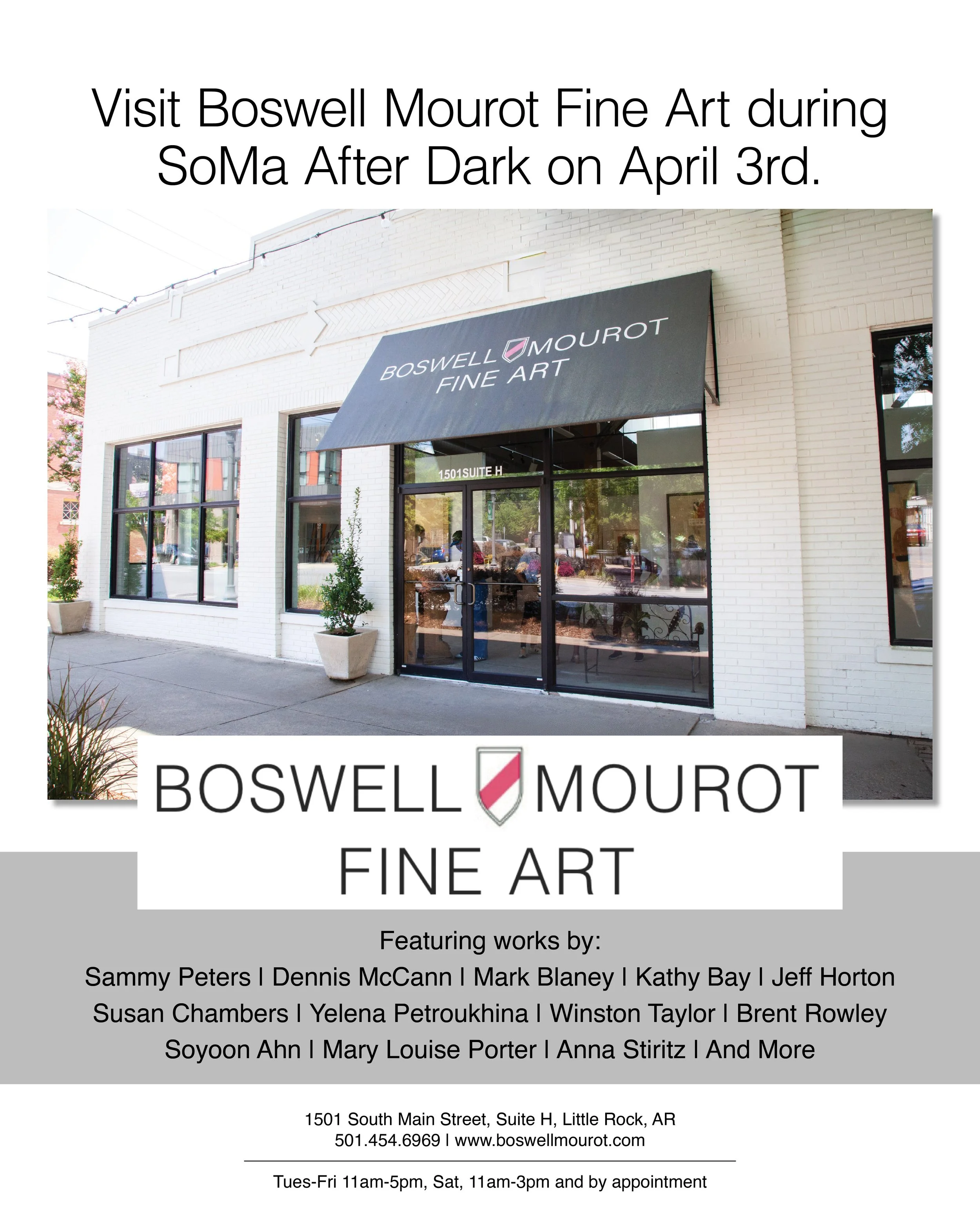 Stop by Boswell Mourot Fine Art during SoMa After Dark and enjoy the work from our featured Arkansas Artists.