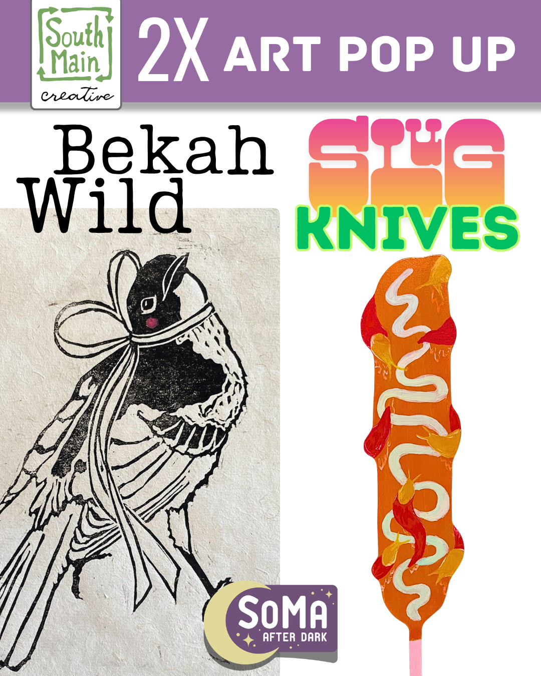 We are so excited to welcome two favorite artists to SMC for our first art pop-up of 2026! Joining us to show their work during May 1 SoMa After Dark are Bekah Wild and Jenna Jones.